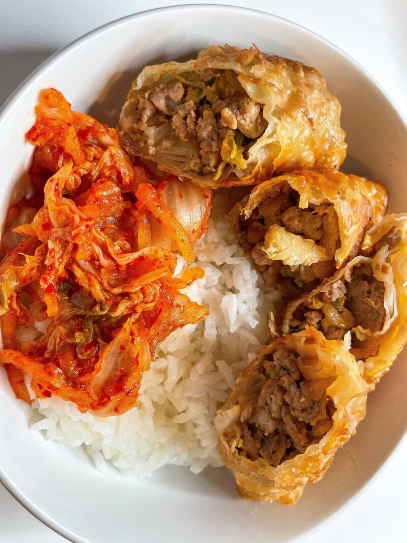 These are addicting, but so easy! I serve over a bed of white rice and some spicy kimchi! I also top the rice with kewpie mayo and sirachi .